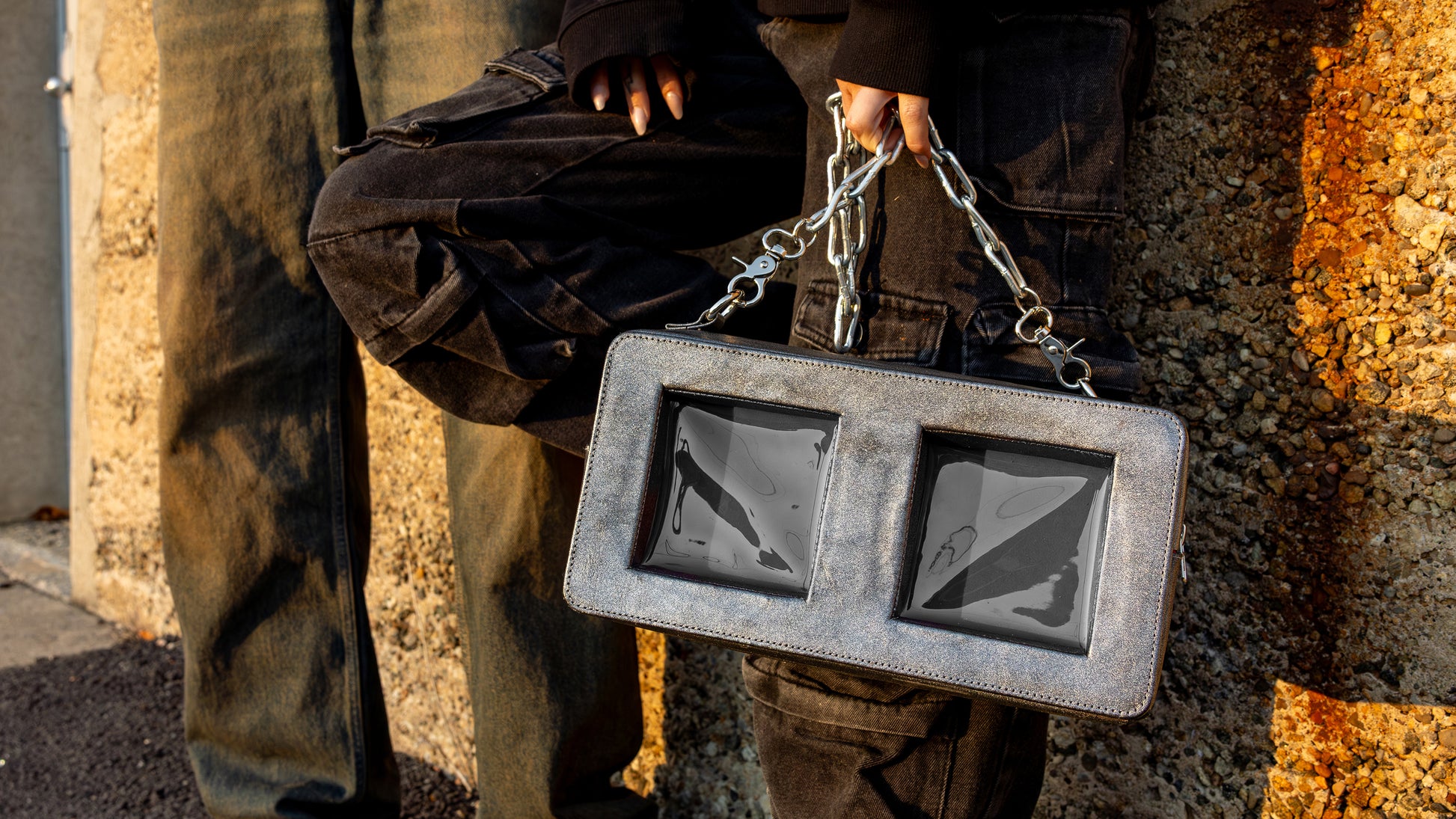 Each bag features a soft, molded body with a hyper-real concrete texture, reinforced stitching, and a structured silhouette that keeps its shape. Whether worn crossbody or carried in hand, this piece turns every sidewalk into a runway.